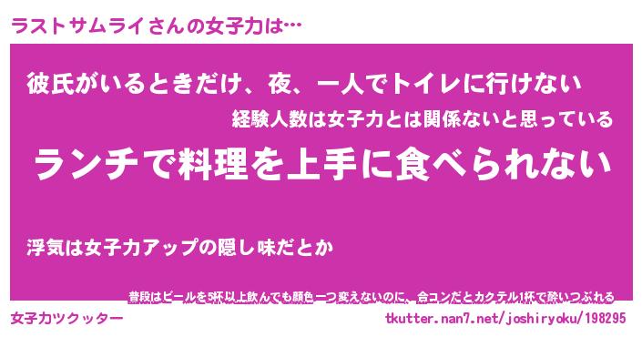| ヘコむあだ名 | 『ラスふぇ~』『牛乳』『ラスお』 |