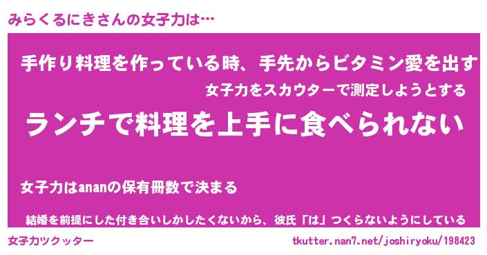 | ヘコむあだ名 | 『みらふぇ~』『つくし』『みらお』 |