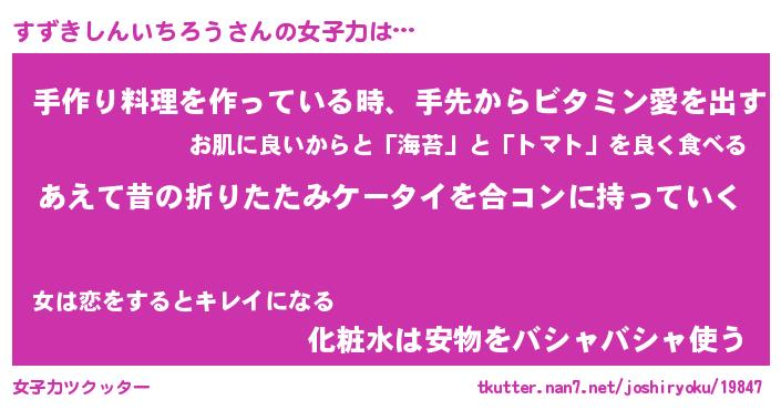 | 男性向けラノベタイトル風あだ名 | 『すずきしんいちろうの憂鬱』 |