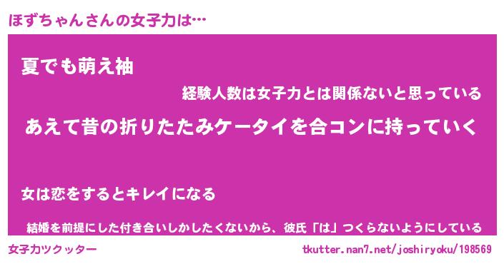 | ヘコむあだ名 | 『ほずにゅー』『なまこ酢』 |
