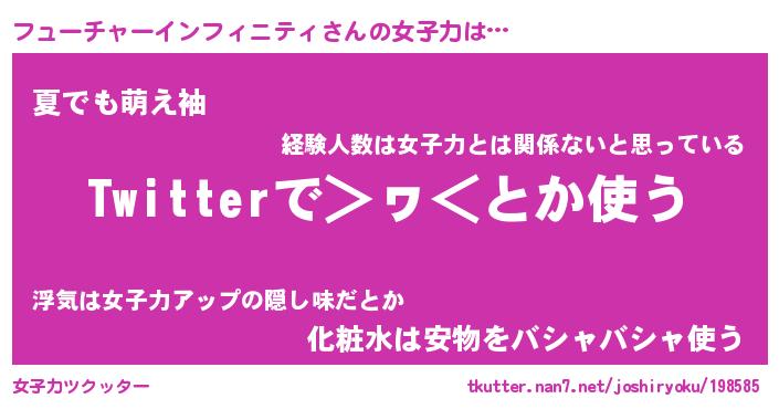 | 男性向けラノベタイトル風あだ名 | 『フューチャーインフィニティの憂鬱』 |