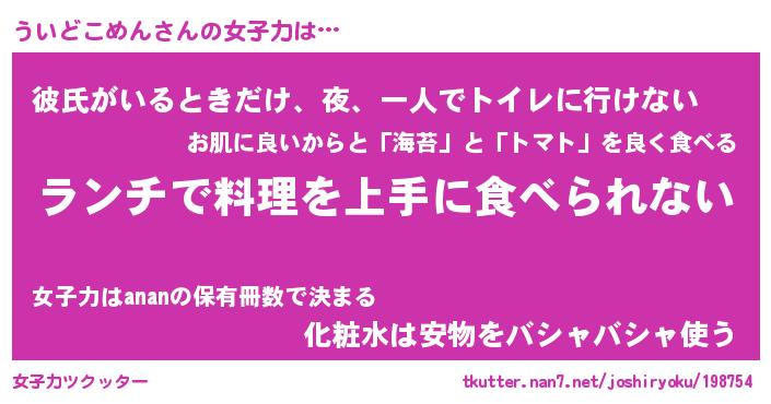 | 恥ずかしいあだ名 | 『プリティーういどこめん』『ういっちょ』 |
