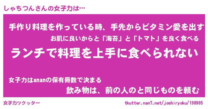| 料理風あだ名 | 『ネギたっぷりしゃちつんの南蛮漬け』 |