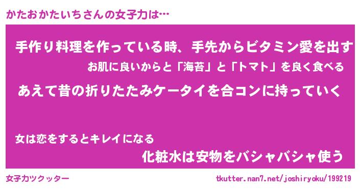 | ヘコむあだ名 | 『かたにー』『豆乳』『かたお』 |