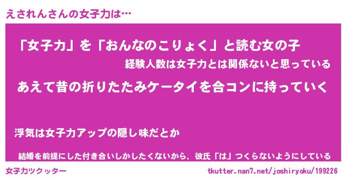 | ファンタジー風あだ名 | 『エサフェル』『エターナルエサレンー』 |
