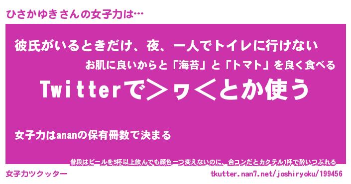 | 女子向けラノベタイトル風あだ名 | 『ひさかゆき姫と円卓の騎士』 |