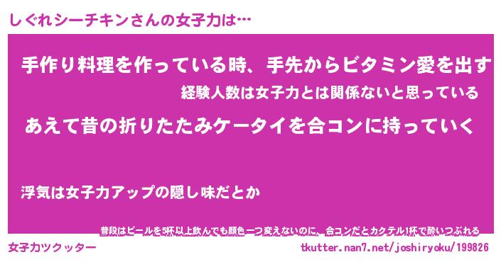 | ヘコむあだ名 | 『しぐもー』『つくし』『しぐっぺ』 |