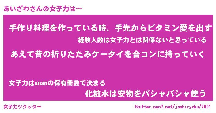 | 意味不明あだ名 | 『ペロリンあいざわ』『永久保存あいざわ』 |