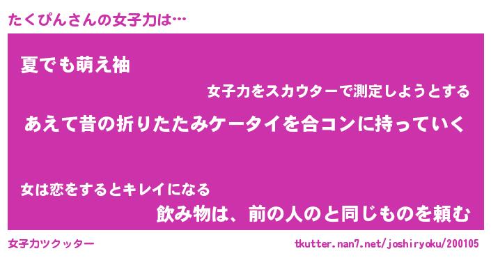 | 意味不明あだ名 | 『ペロリンたくぴん』『永久保存たくぴん』 |
