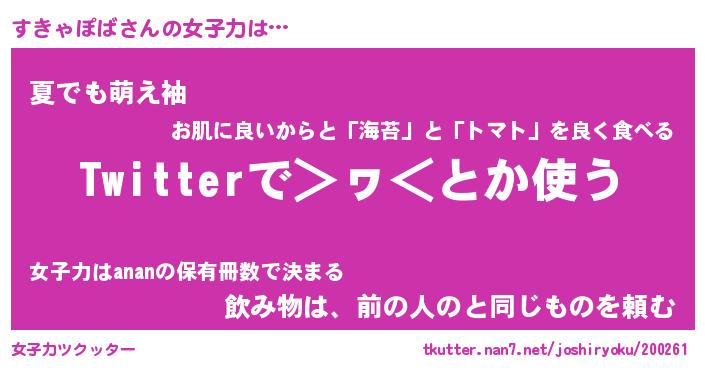 | ヘコむあだ名 | 『すきっふぃ~』『なまこ酢』 |