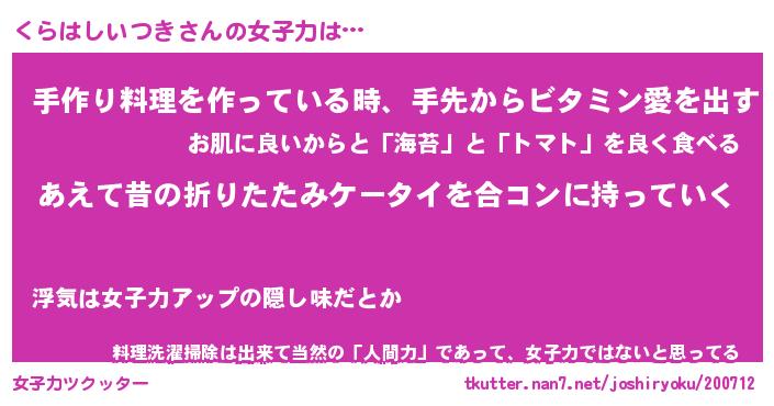 | ヘコむあだ名 | 『くらもー』『つくし』『くらぷりん』 |