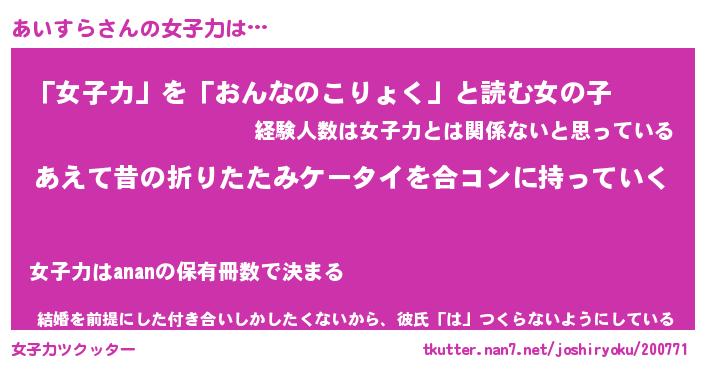 | 意味不明あだ名 | 『ペロリンあいすら』『永久保存あいすら』 |