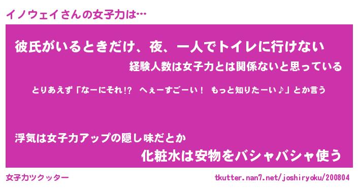 | ファンタジー風あだ名 | 『イノフェル』『エターナルイノウェイー』 |