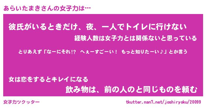| ヘコむあだ名 | 『あらっふぃ~』『牛乳』『あらお』 |