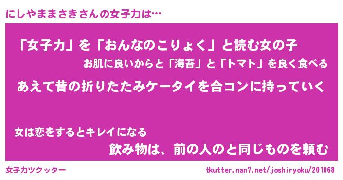 | 女子向けラノベタイトル風あだ名 | 『(仮)にしやままさきのやんごとなき事情』 |