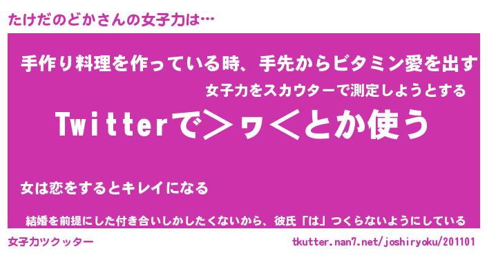 | ヘコむあだ名 | 『たけっふぃ~』『つくし』 |