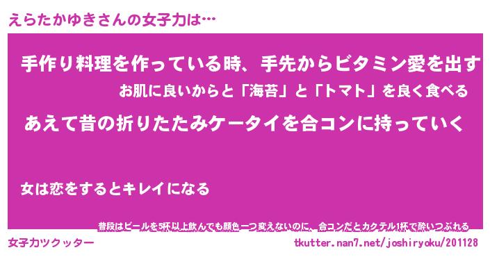 | 恥ずかしいあだ名 | 『プリティーえらたかゆき』『えらっちょ』 |