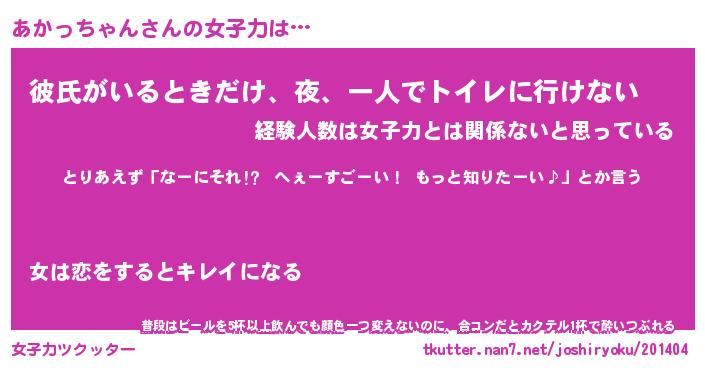 | ヘコむあだ名 | 『あかにー』『つくし』『あかを』 |