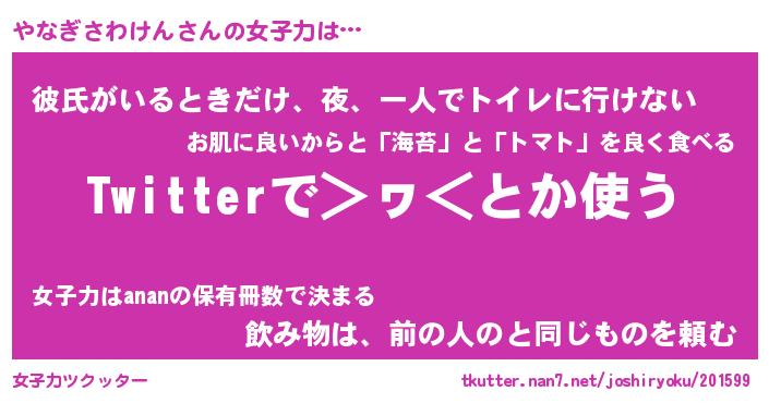 | 恥ずかしいあだ名 | 『プリティーやなぎさわけん』『やなちん』 |