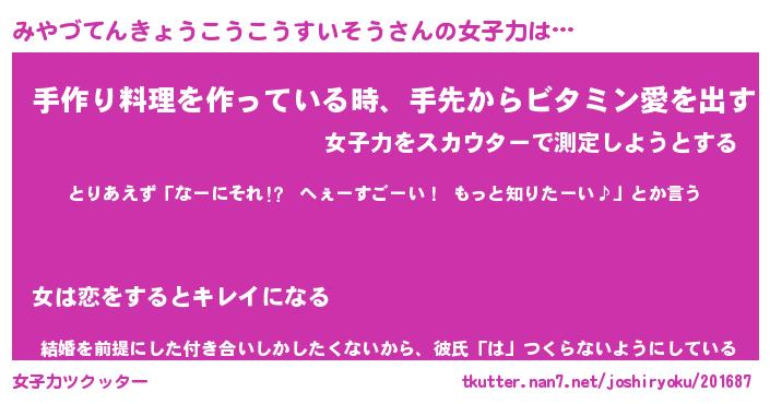 | ヘコむあだ名 | 『みやにゅー』『つくし』 |
