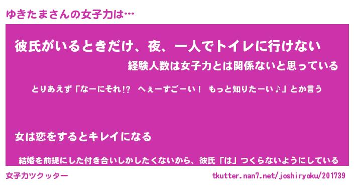 | ヘコむあだ名 | 『ゆきにゅー』『豆乳』『ゆきお』 |