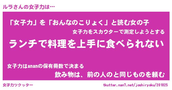 | ヘコむあだ名 | 『ルラにゅー』『豆乳』『ルラぷりん』 |
