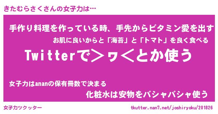 | 肩書あだ名 | 『きたむらさく御曹司』 |