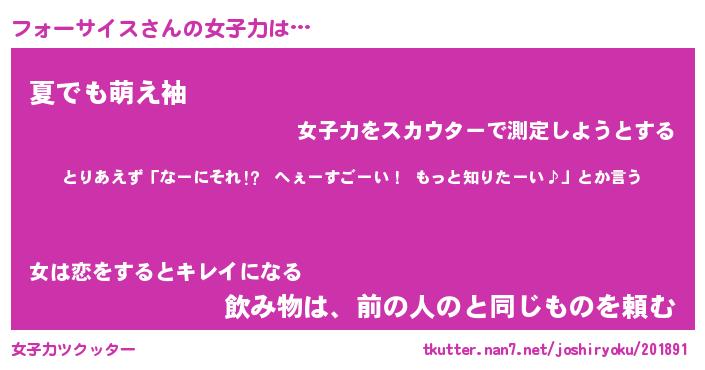 | 胡散臭い通販商品みたいなあだ名 | 『モテモテ間違いなし霊験あらたかなお札…その名も「フォーサイス」』 |