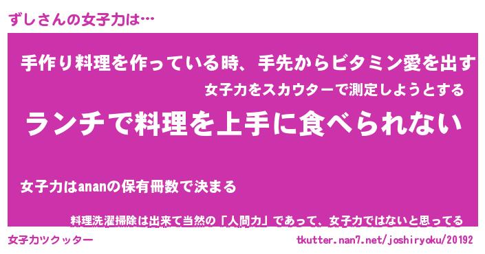 | ヘコむあだ名 | 『ずしっふぃ~』『つくし』『ずしを』 |