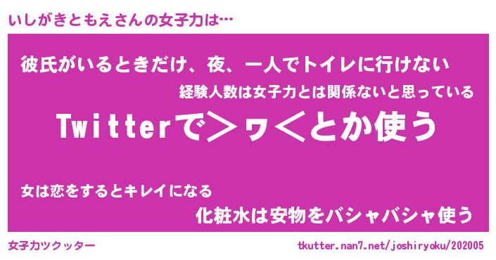 | 肩書あだ名 | 『いしがきともえ御曹司』 |