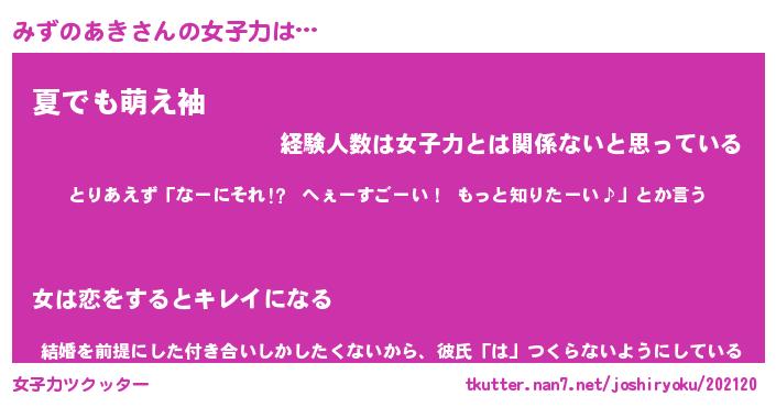 | 恥ずかしいあだ名 | 『プリティーみずのあき』『みずっちょ』 |