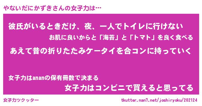 | 料理風あだ名 | 『ほっこり♪やないだにかずきの味噌そぼろ煮』 |