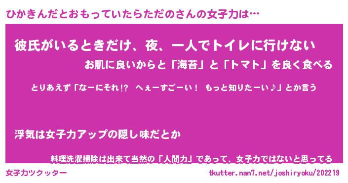 | 料理風あだ名 | 『節約★ひかきんだとおもっていたらただのと油揚げの玉子丼』 |