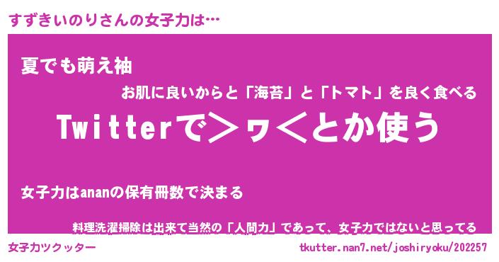 | ヘコむあだ名 | 『すずっふぃ~』『なまこ酢』 |