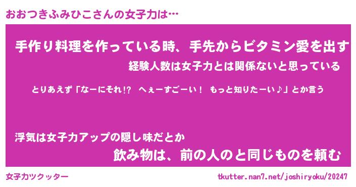 | 女子向けラノベタイトル風あだ名 | 『おおつきふみひこ姫と円卓の騎士』 |