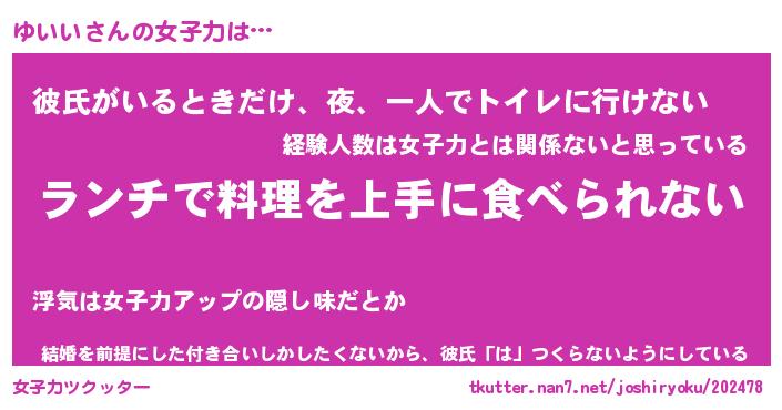 | ヘコむあだ名 | 『ゆいふぇ~』『牛乳』『ゆいぷりん』 |