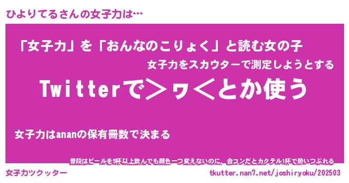 | ファンタジー風あだ名 | 『ヒヨフェル』『エターナルヒヨリテルー』 |