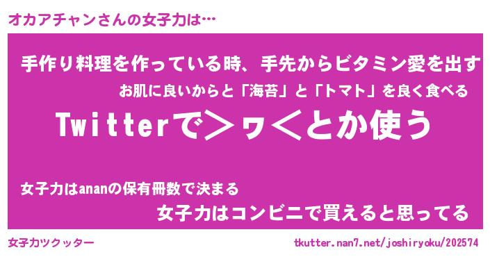 | ヘコむあだ名 | 『オカふぇ~』『つくし』『オカ太郎』 |