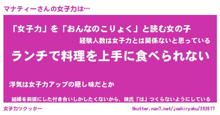 | ファンタジー風あだ名 | 『マナフェル』『エターナルマナティーー』 |