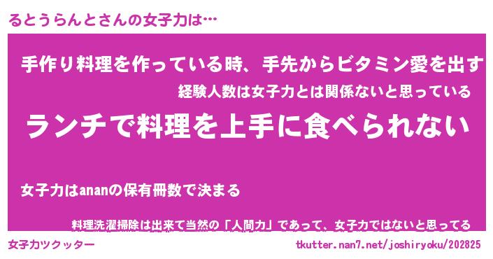| ヘコむあだ名 | 『るとにー』『豆乳』『るとっぺ』 |