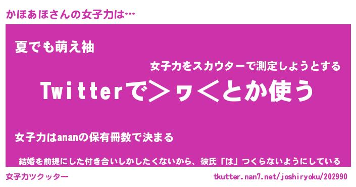 | 意味不明あだ名 | 『ペロリンかほあほ』『永久保存かほあほ』 |