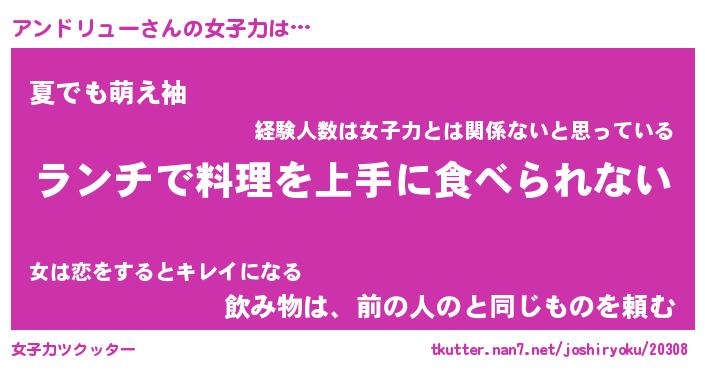 | ヘコむあだ名 | 『アンもー』『なまこ酢』『アンを』 |