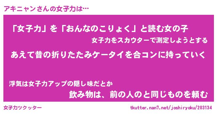 | ヘコむあだ名 | 『アキふぇ~』『レバニラ』 |