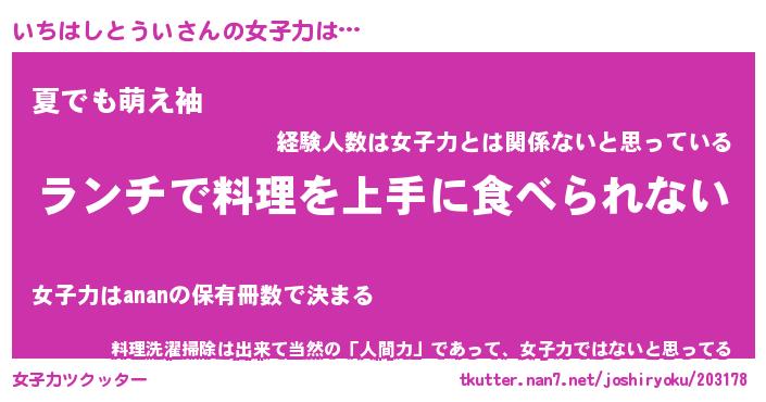 | ヘコむあだ名 | 『いちっふぃ~』『なまこ酢』 |