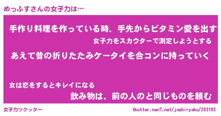 | 意味不明あだ名 | 『ペロリンめっふす』『永久保存めっふす』 |