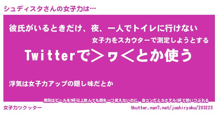 | ヘコむあだ名 | 『シュにゅー』『豆乳』『シュぷりん』 |