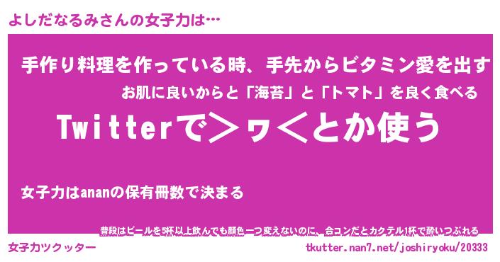 | 恥ずかしいあだ名 | 『プリティーよしだなるみ』『よしっちょ』 |