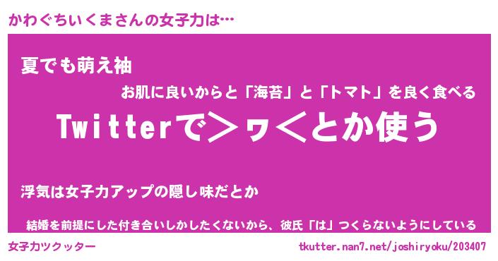 | 胡散臭い通販商品みたいなあだ名 | 『モテモテ間違いなし霊験あらたかなお札…その名も「かわぐちいくま」』 |