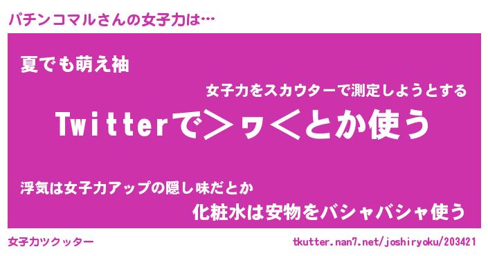 | 女子向けラノベタイトル風あだ名 | 『パチンコマル姫と円卓の騎士』 |