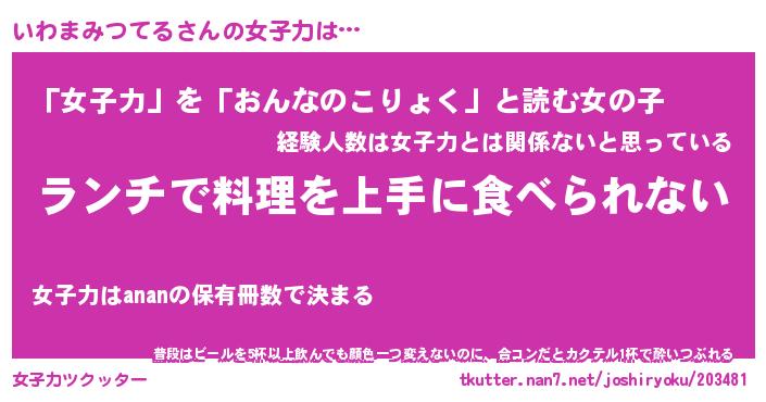 | 恥ずかしいあだ名 | 『プリティーいわまみつてる』『いわちん』 |
